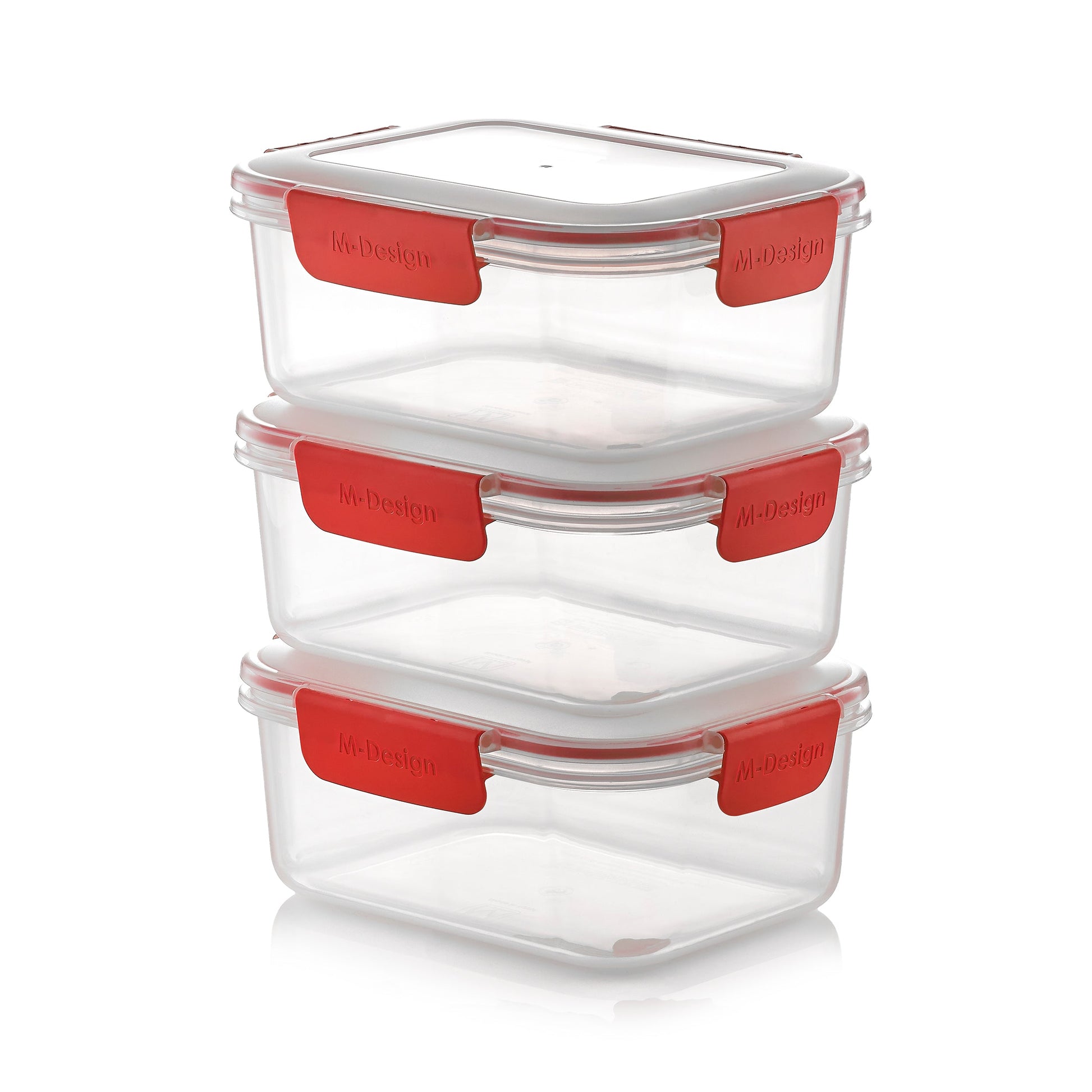 This set comes with three convenient sizes. M-Design Fresco ™ food containers feature ‘lock tight’ clips and a rubber seal, keeping your food fresher for longer.